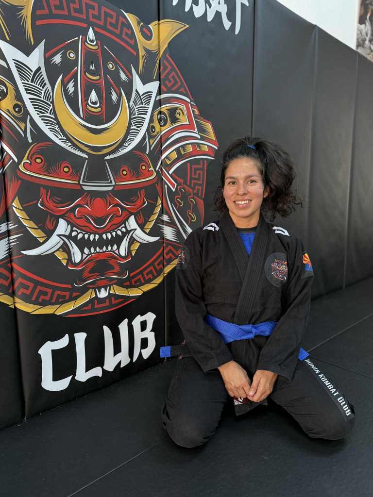 Coach Sandra tried martial arts for the first time when she moved to Hawaii in 2010. She has practiced boxing, kickboxing, and some ground work. She eventually moved back to AZ and trained in Muay Thai for a few years. She began training jiu jitsu in 2023 a few months after enrolling her daughter, and then made it a family affair. She believe being able to defend herself and her family is extremely important asset to have as a mother.